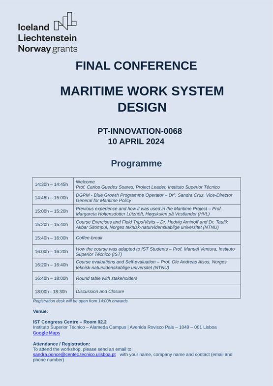 10-04-2024 14:30 10-04-2024 18:30 IST Congress Centre - Rom 02.2 Conferência final do projeto MARITIME