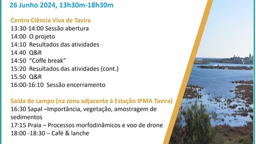 O evento terá lugar no dia 26 de junho de 2024, pelas 13h30, no Centro Ciência Viva de Tavira, seguida de uma saída de campo na zona adjacente à Estação do IPMA Tavira.