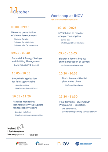 Entre 10 e 14 de outubro, a equipa da Noruega do projeto Fish2Fork virá visitar Portugal e assistir a série de workshops, envolvendo empresas Portuguesas e entidades locais.