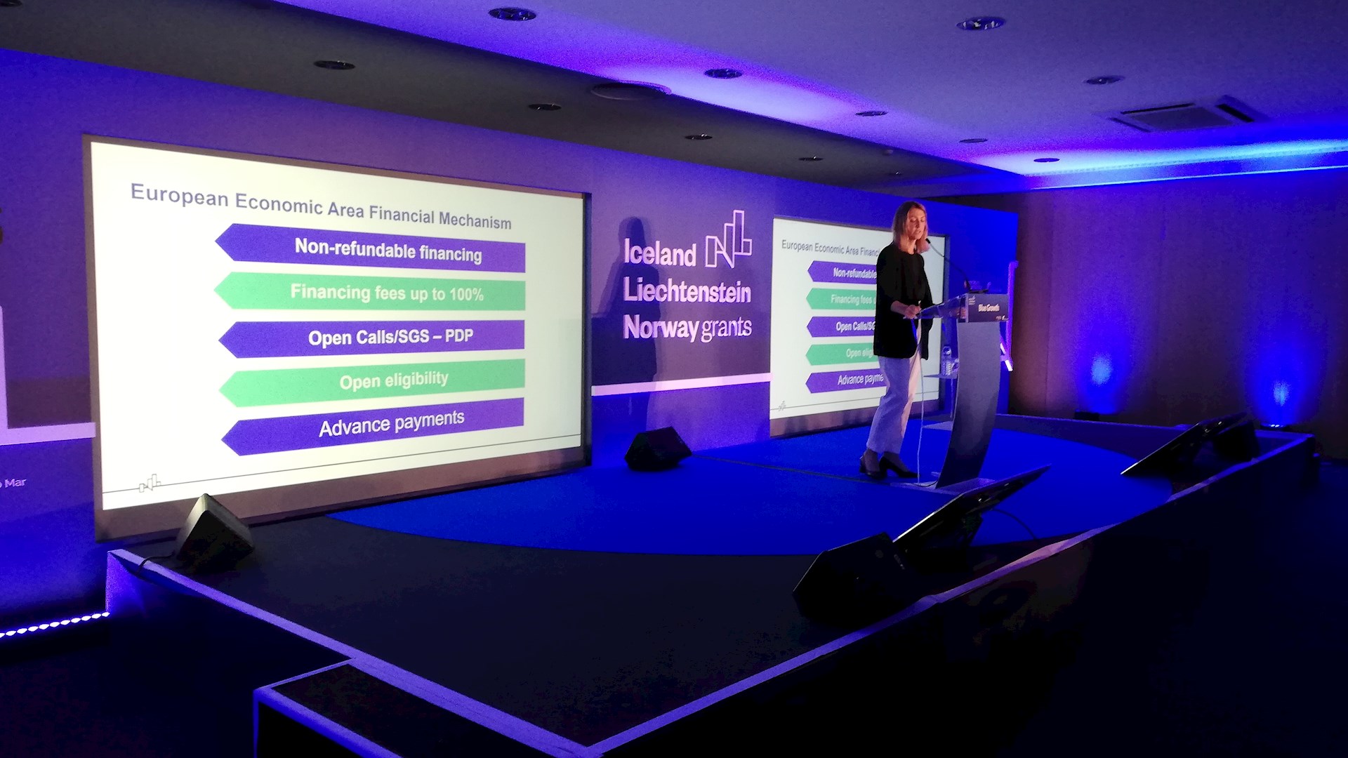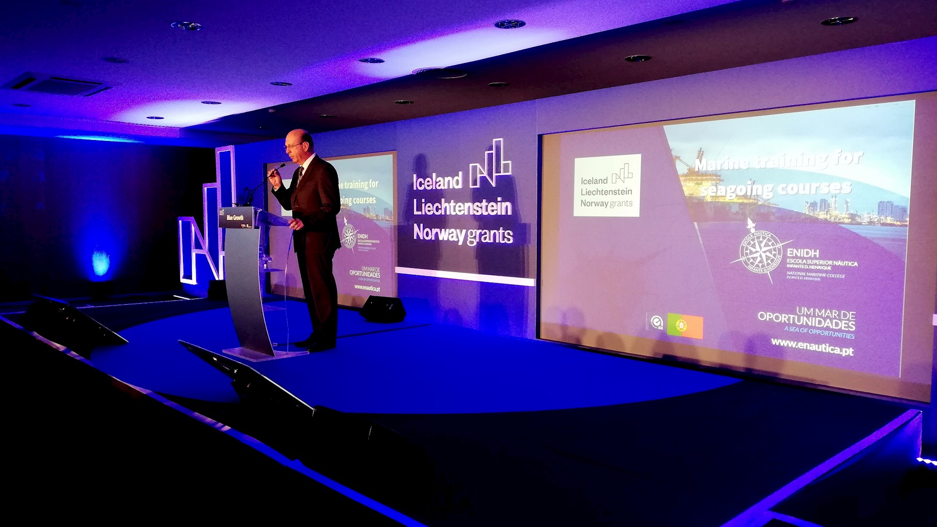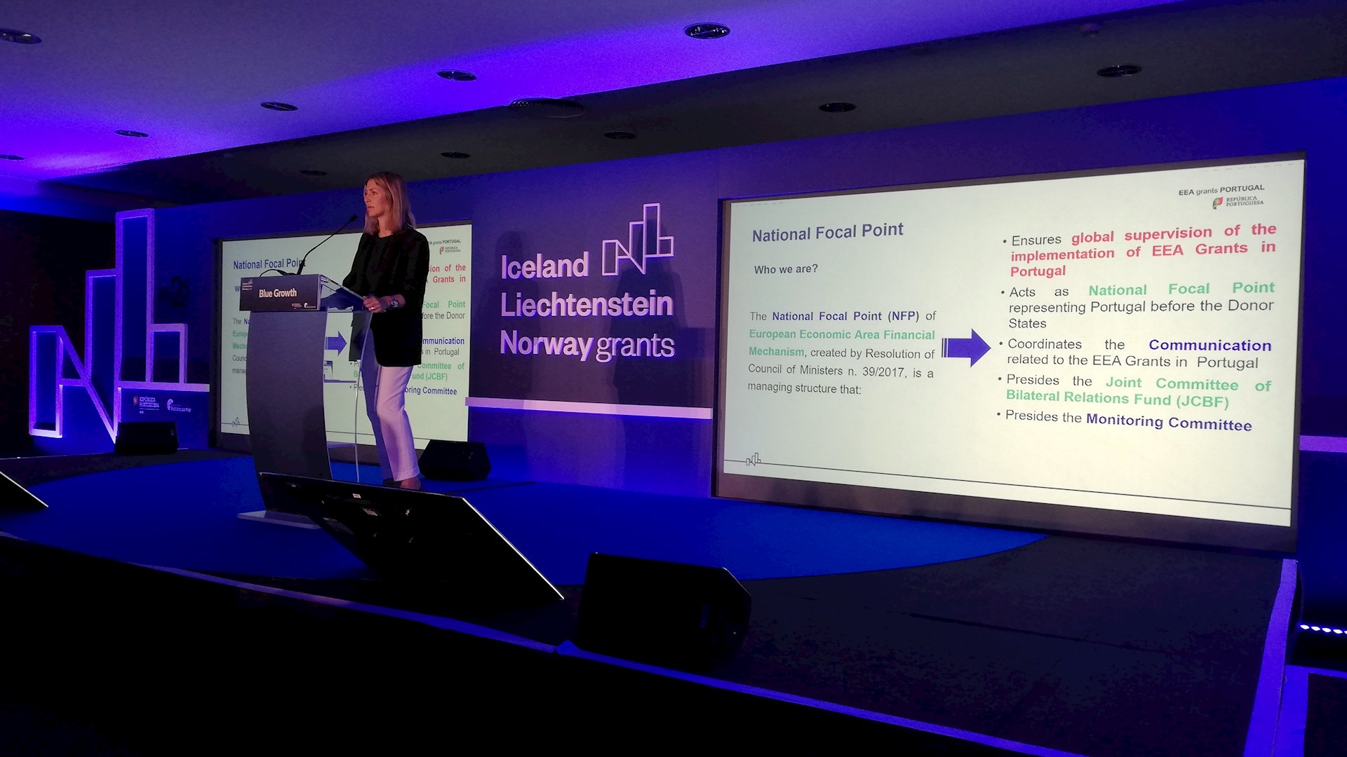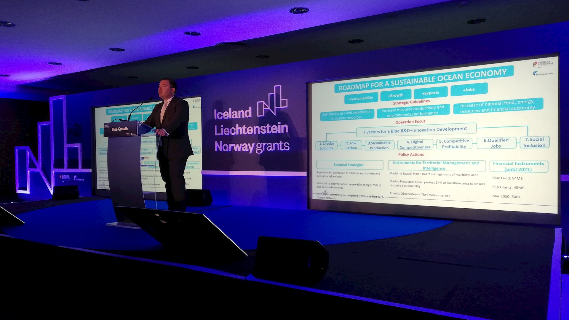 O Evento "Programa Crescimento Azul EEA Grants 2014-2021 Working together for a Sustainable Blue Growth", teve lugar no dia 14 de maio de 2019, no Centro de Congressos de Lisboa, tendo em vista o estabelecimento de parcerias bilaterais entre Portugal e os Países Doadores (Islândia, Liechtenstein e Noruega) que operam na cadeia de valor da economia do mar (Blue Growth), incluindo um palco para discussão e debates, bem como uma área para reuniões de negócios B2B e rede privada.