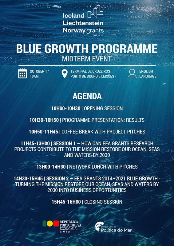 O evento Midterm do Programa Crescimento Azul realiza-se no próximo dia 17 de outubro de 2023, às 10h00, no Terminal de Cruzeiros do Porto do Douro e Leixões., O evento, dedicado à apresentação de resultados alcançados, é composto por duas sessões de grande relevância. designadamente: