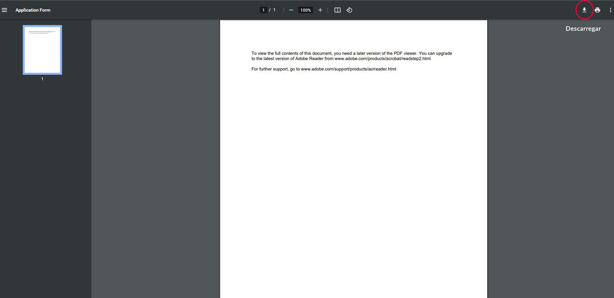 Os formulários de candidatura, no formato pdf, são descarregados para o computador. Para a sua visualização e preenchimento deverá aceder à pasta para a qual os documentos foram descarregados e abrir os formulários com o programa Adobe Acrobat Reader (veja a imagem 1 e a imagem 2 com as instruções).